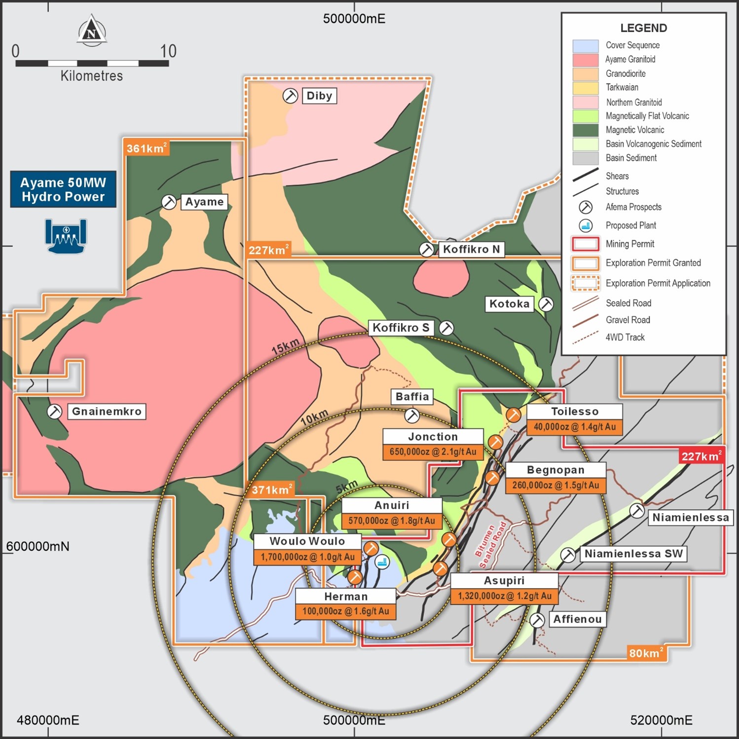 - All MRE deposits located within a 6-7km radius, with all but the Herman Deposit positioned entirely within the granted Afema mining permit. Herman traverses the mining permit and adjoining exploration permit.